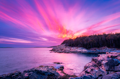 ACADIA Acadia captures the essence of Maine's wild character, blending granite and sea, tranquil forest paths, and shifting Atlantic light, while revealing a landscape of tidal pools and ridgelines shaped by time, inviting a sense of calm and connection to its quiet, inspiring wildness.